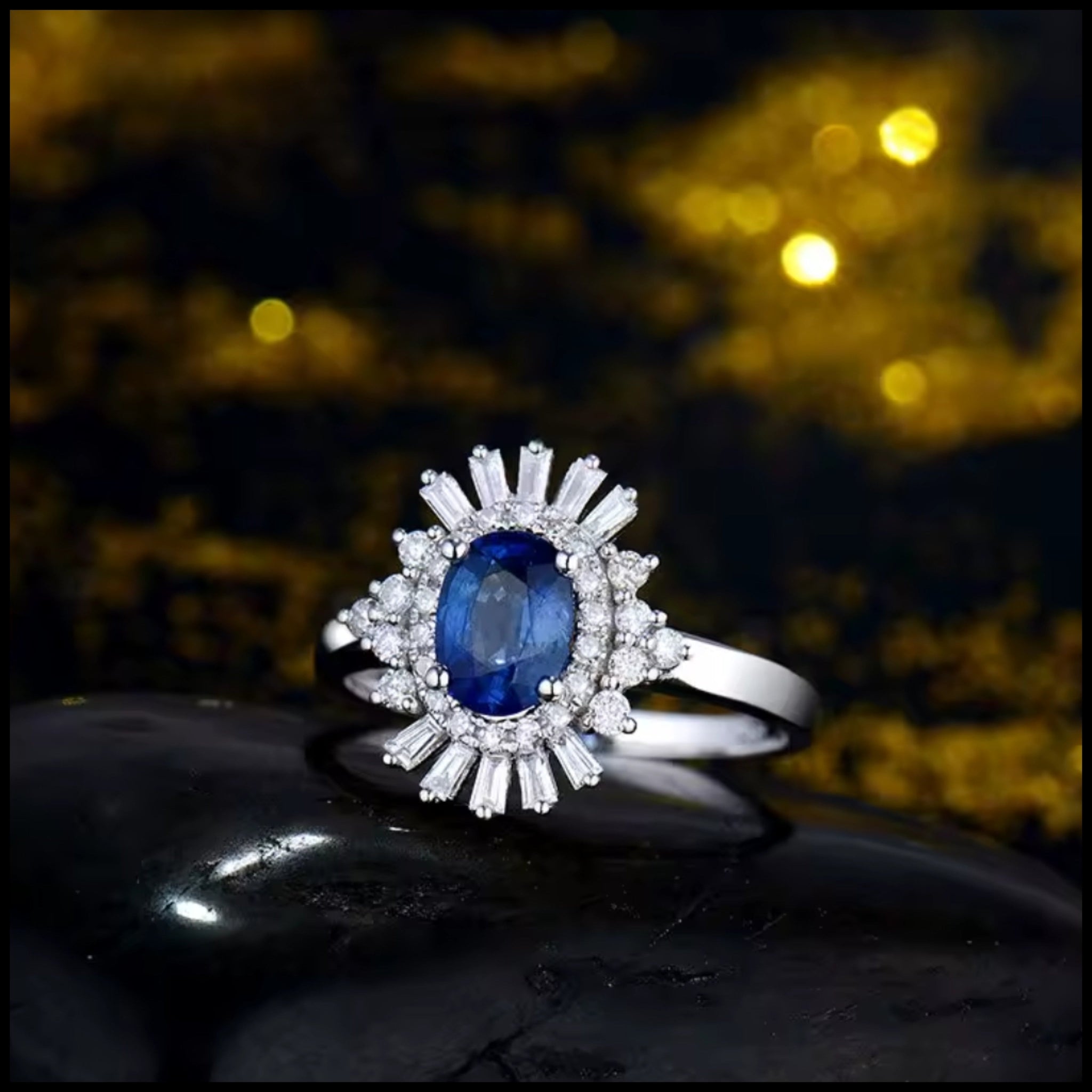 Introducing the stunning Amelia ring, featuring a vivid blue tanzanite stone surrounded by sparkling diamonds....