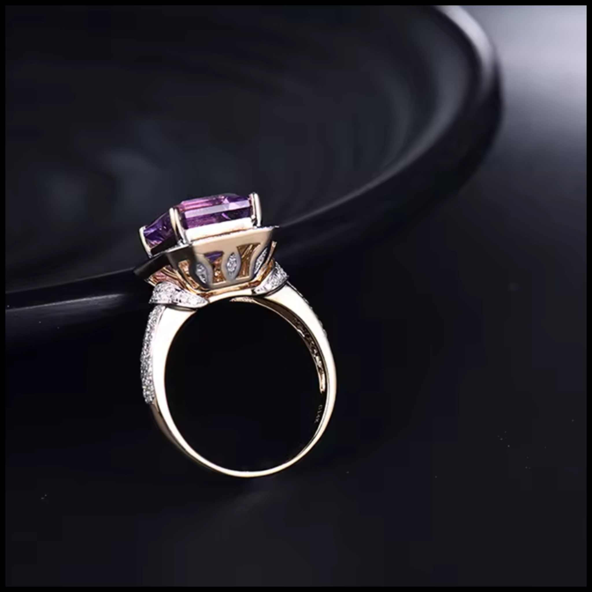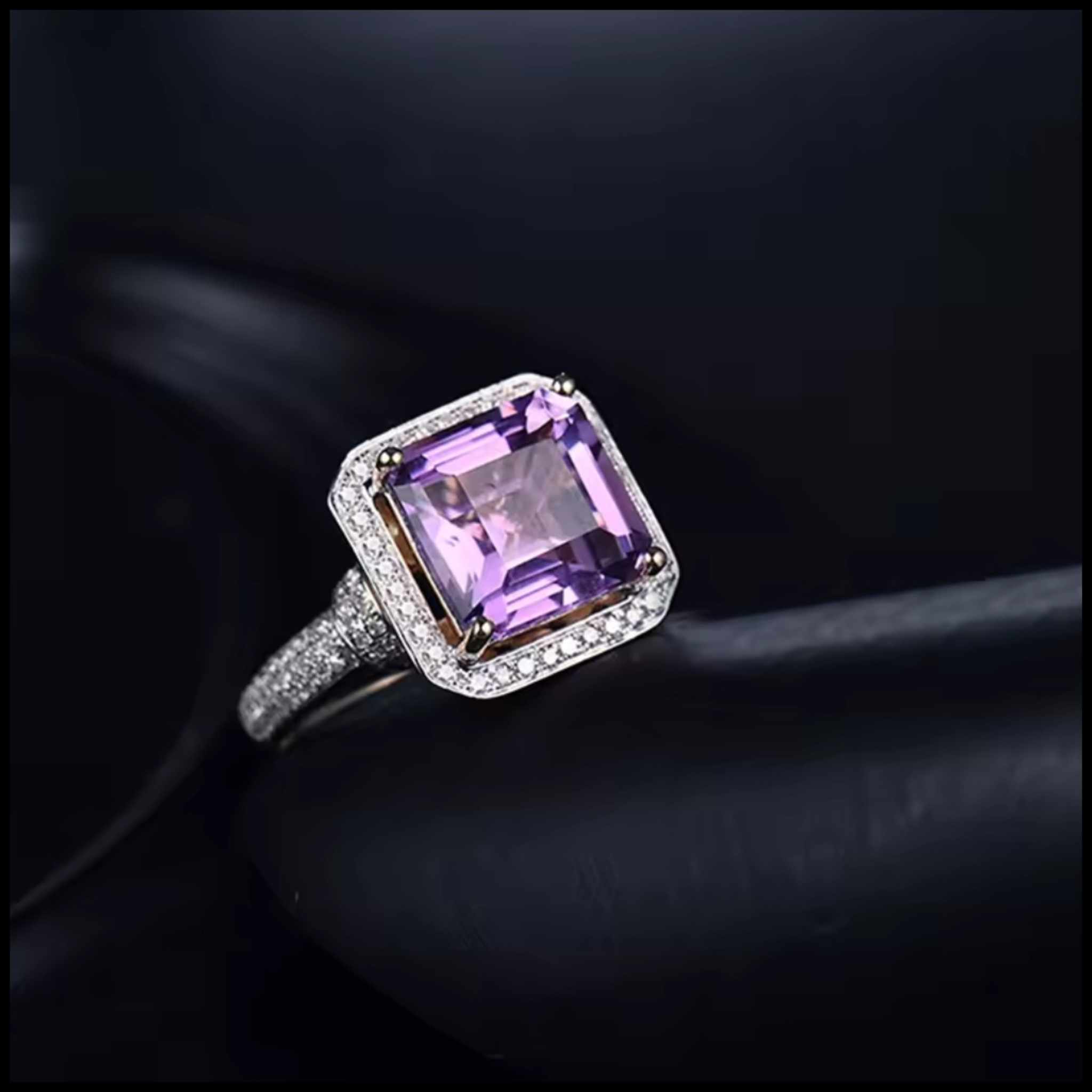 Make a lasting impression with this stunning amethyst and diamond ring, expertly set in solid...