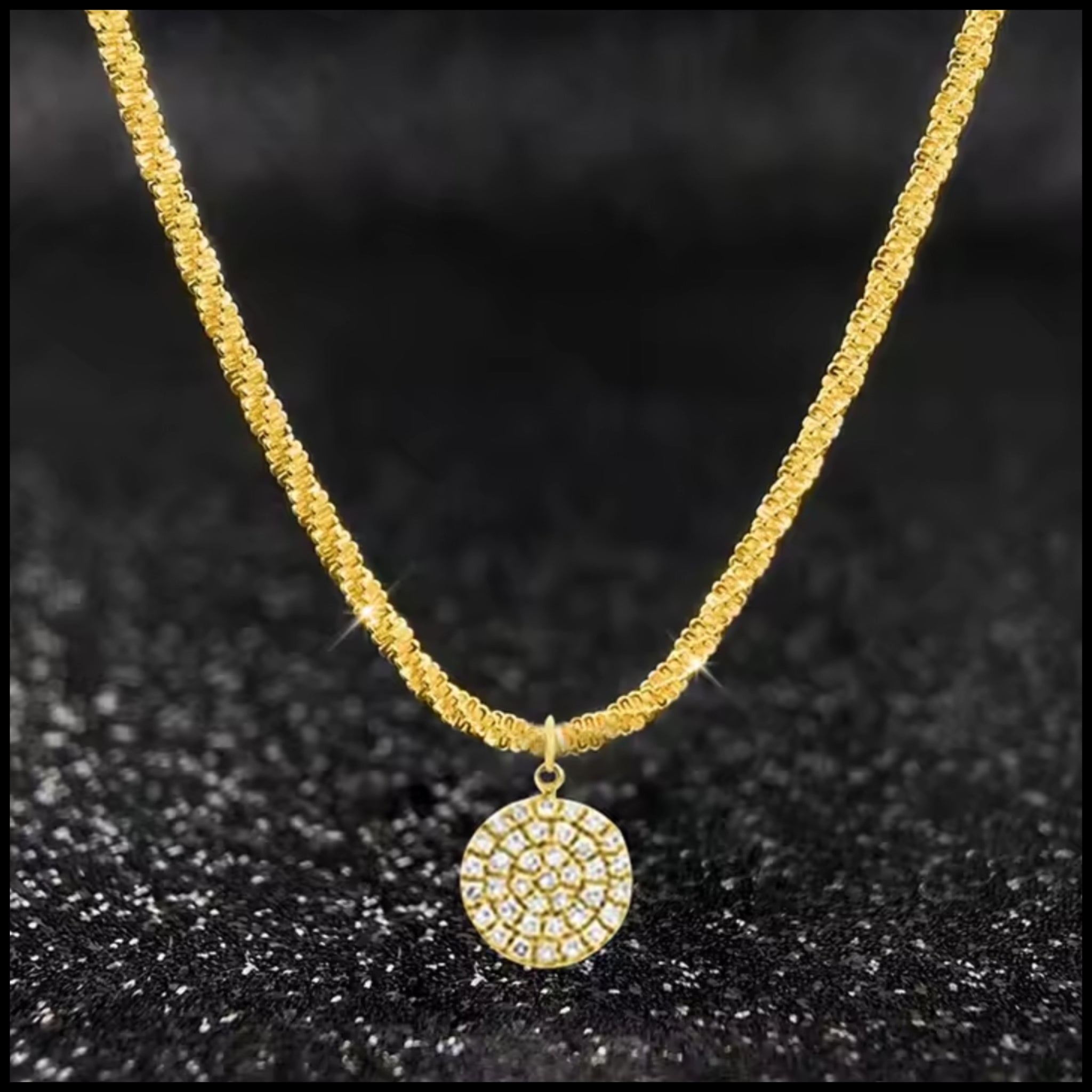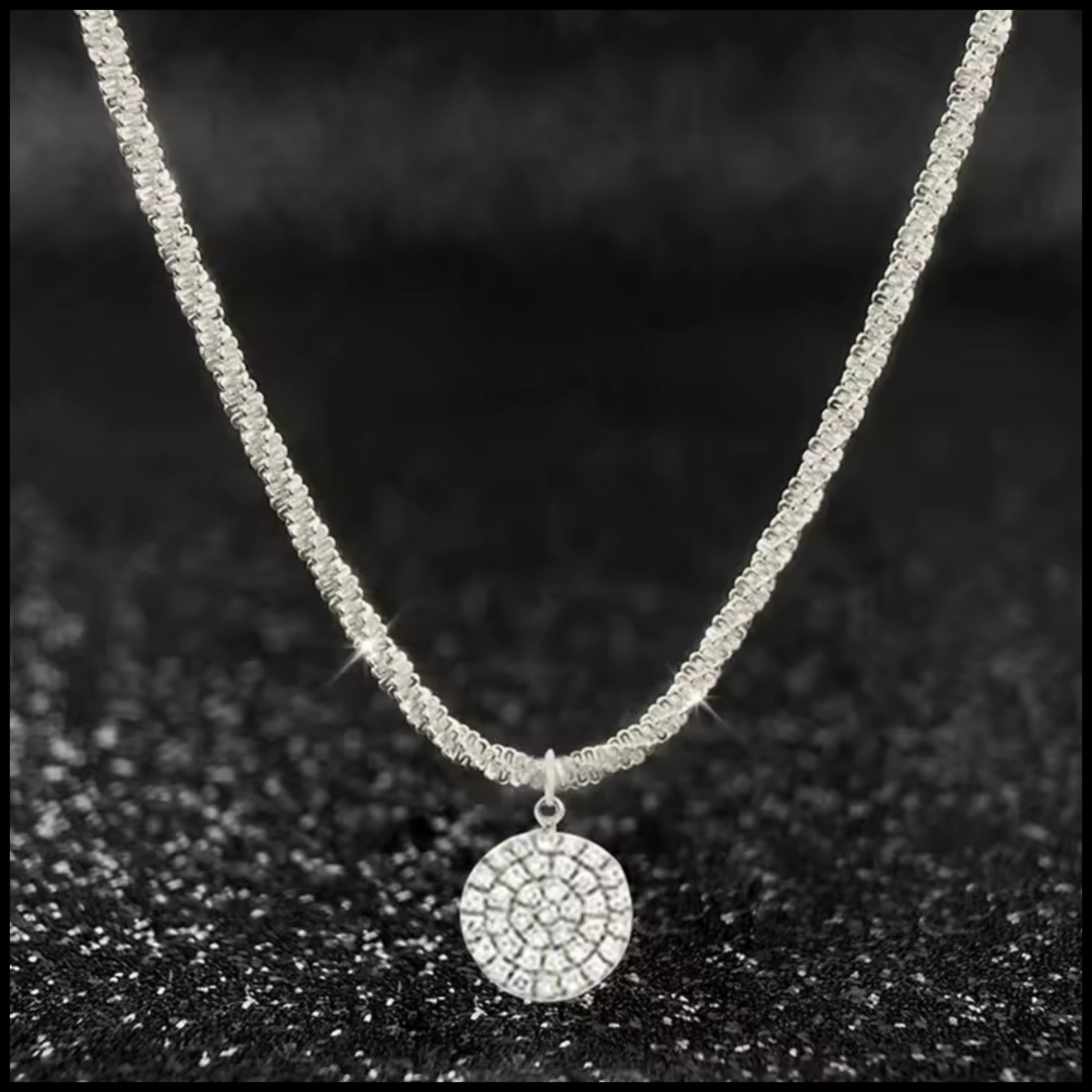 This elegant round zircon pendant necklace is available in solid silver or gold-plated finish, combining...