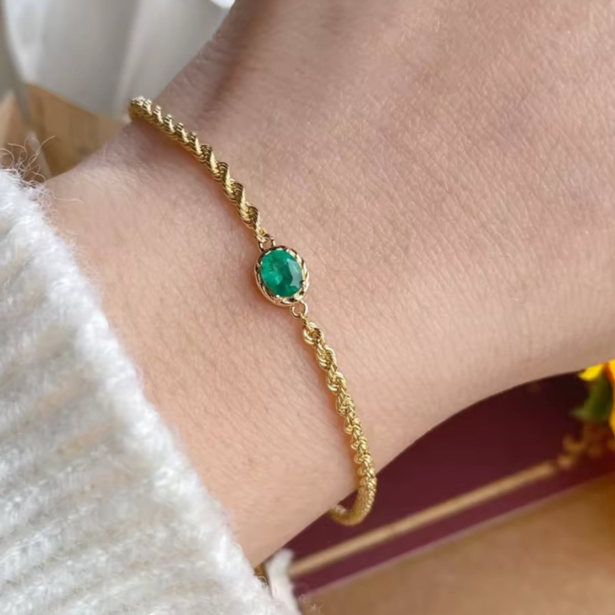 Elevate your jewellery collection with this sophisticated natural emerald bracelet,...