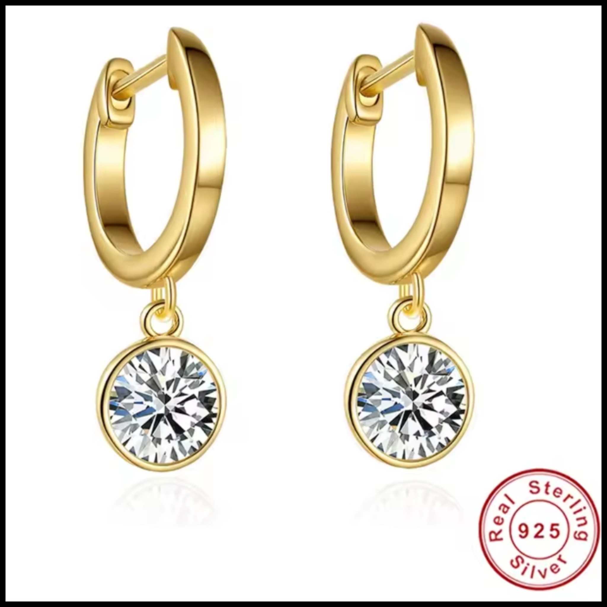 Expertly crafted with 5 sparkling moissanite stones per earring, these gold plated drop hoop earrings...