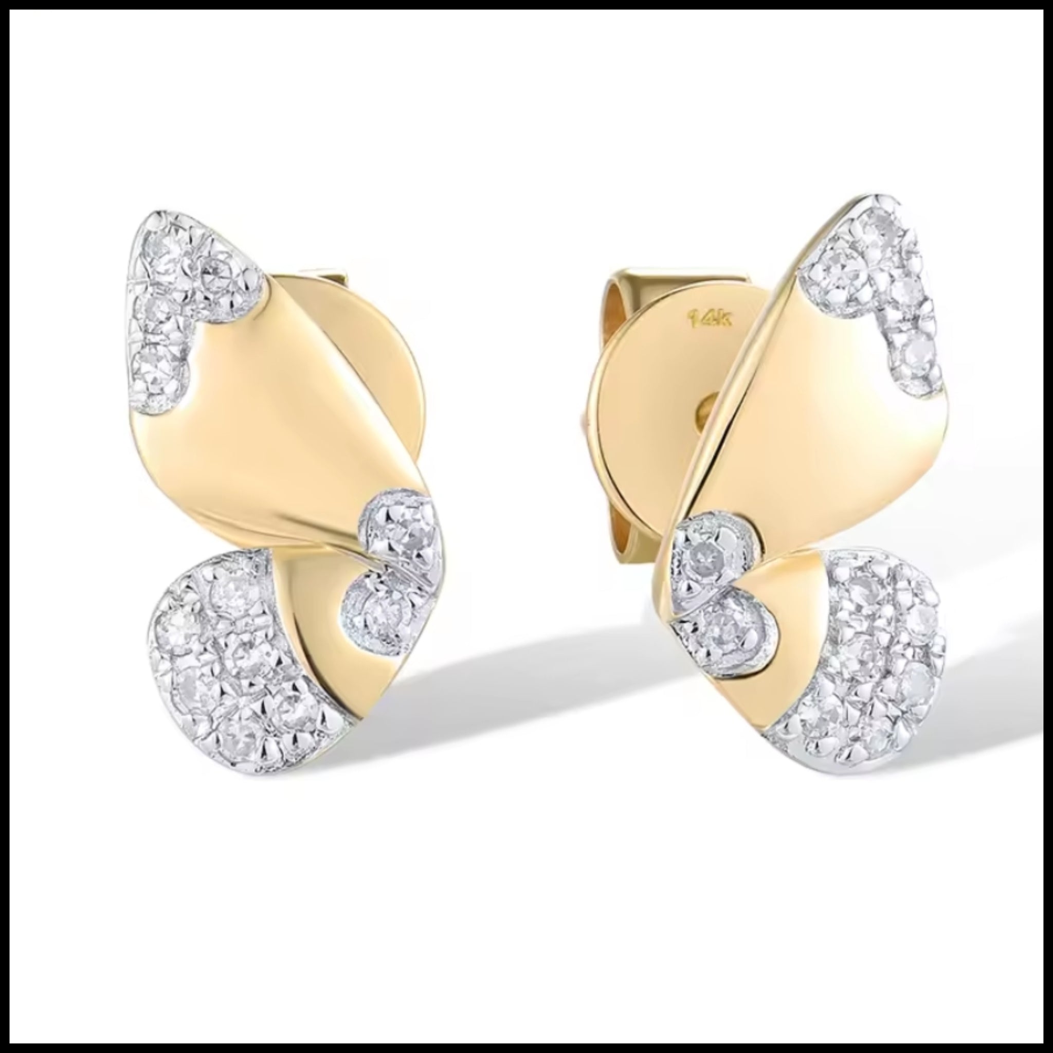 Elevate your jewellery collection with these exquisite butterfly earrings, crafted from solid 14k yellow gold. Featuring 24 natural diamonds totalling 0.07ct, their delicate 5mm by 9mm design captures light beautifully for a subtle yet captivating sparkle. These earrings are the perfect blend of elegance and charm, ideal for adding a refined touch to any look.