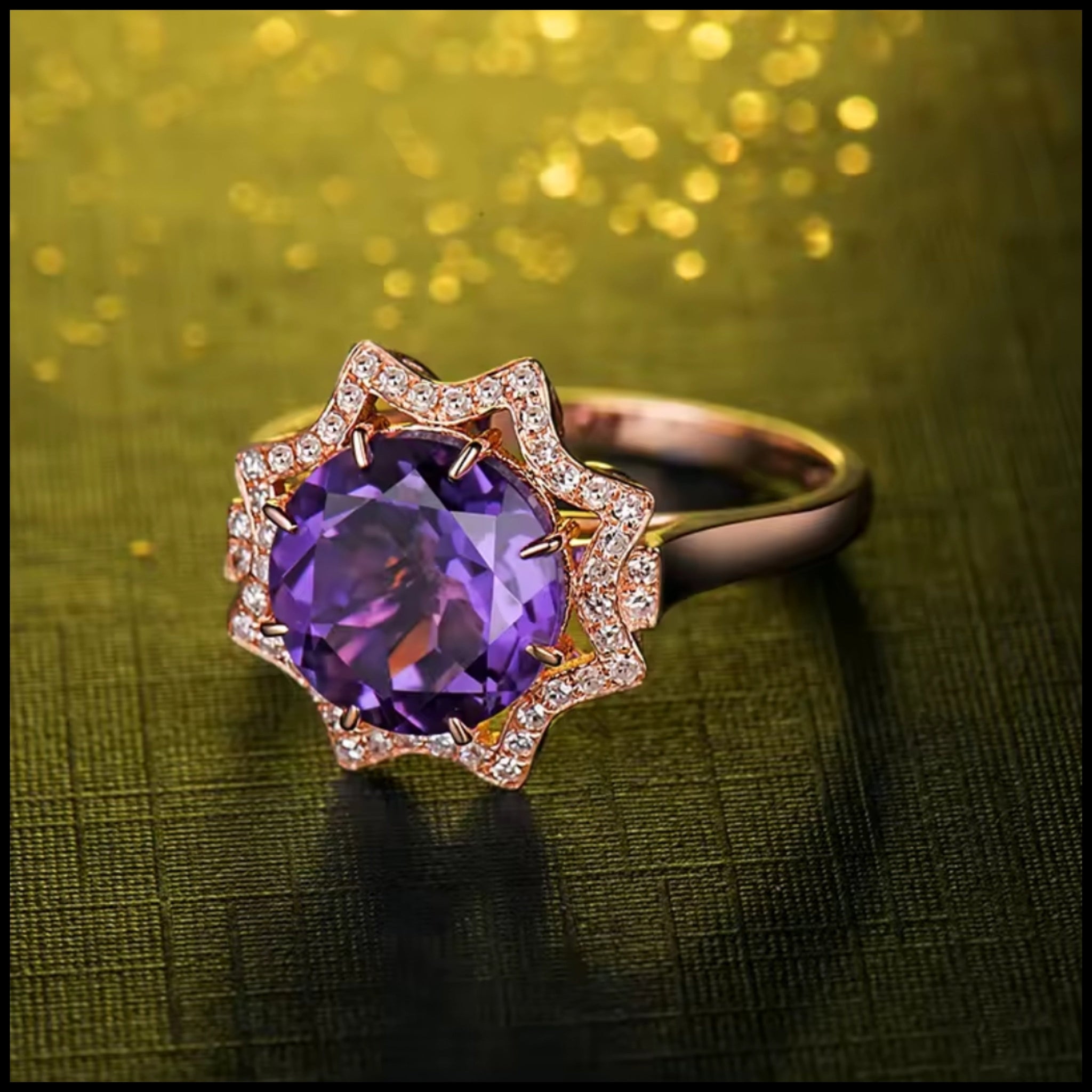 Discover why the Cara ring deserves a place in your collection. This 18k solid rose gold treasure features a mesmerising 2.755CT purple amethyst that catches light beautifully, enhanced by 0.174CT of natural diamonds (round cut, SI1 clarity, G-H colour, 9MM). Weighing just 2.45g, it offers substantial presence with effortless wearability. Expertly crafted to the highest standards, this is the ring you'll reach for again and again—a versatile investment that elevates any occasion.