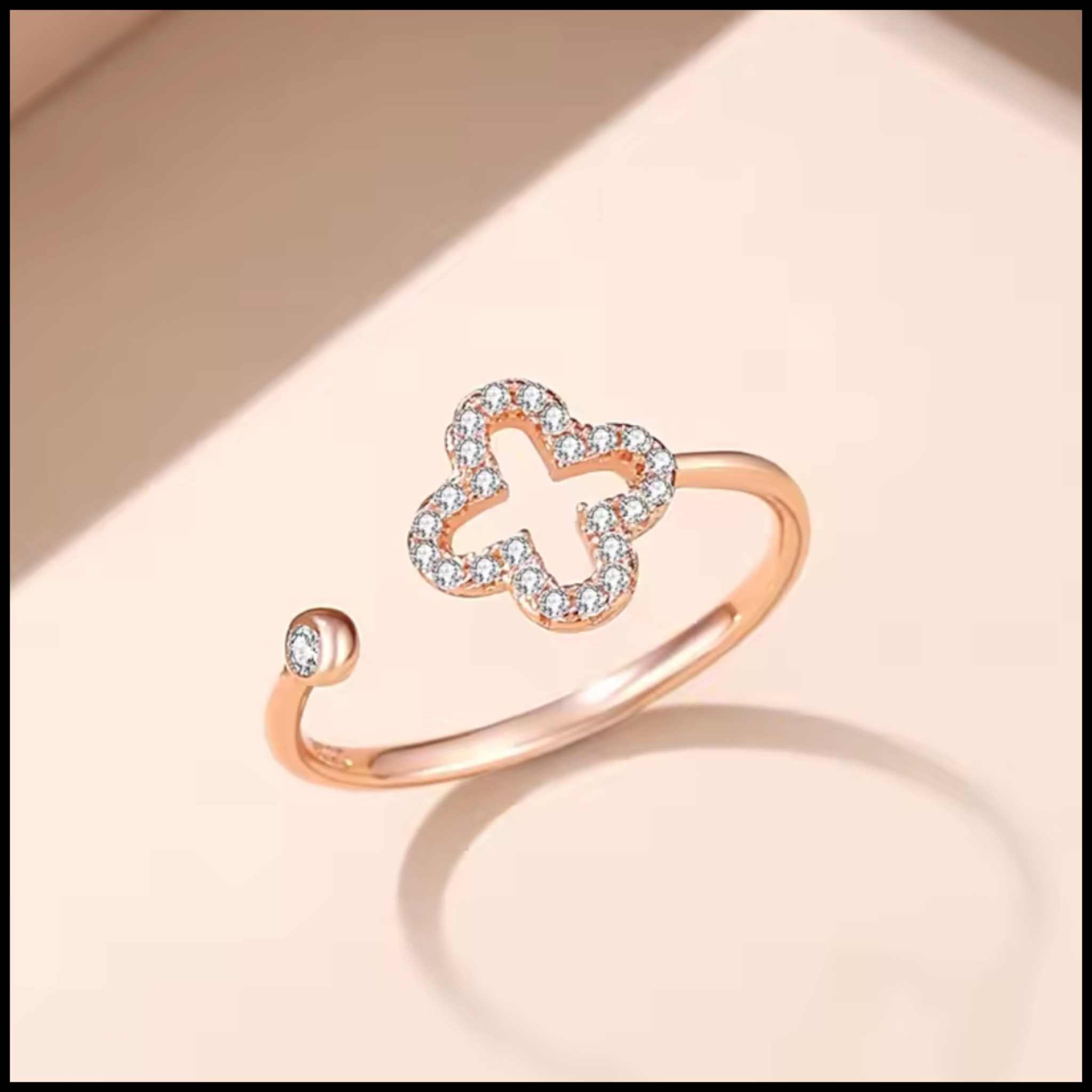 Embrace good fortune with this enchanting four leaf clover ring, a timeless symbol of luck and prosperity. Crafted from premium materials, choose between lustrous solid silver or rose gold plated silver with triple-layer protection against tarnish. Each design features stunning AAA+ cubic zirconia stones that sparkle brilliantly, catching light with every gesture. The adjustable band ensures a comfortable, personalised fit for any finger size, making it the perfect everyday accessory or meaningful gift. Whether you're seeking a touch of magic or simply love the clover's delicate charm, this versatile ring combines elegance with practicality—a piece you'll treasure and reach for again and again.